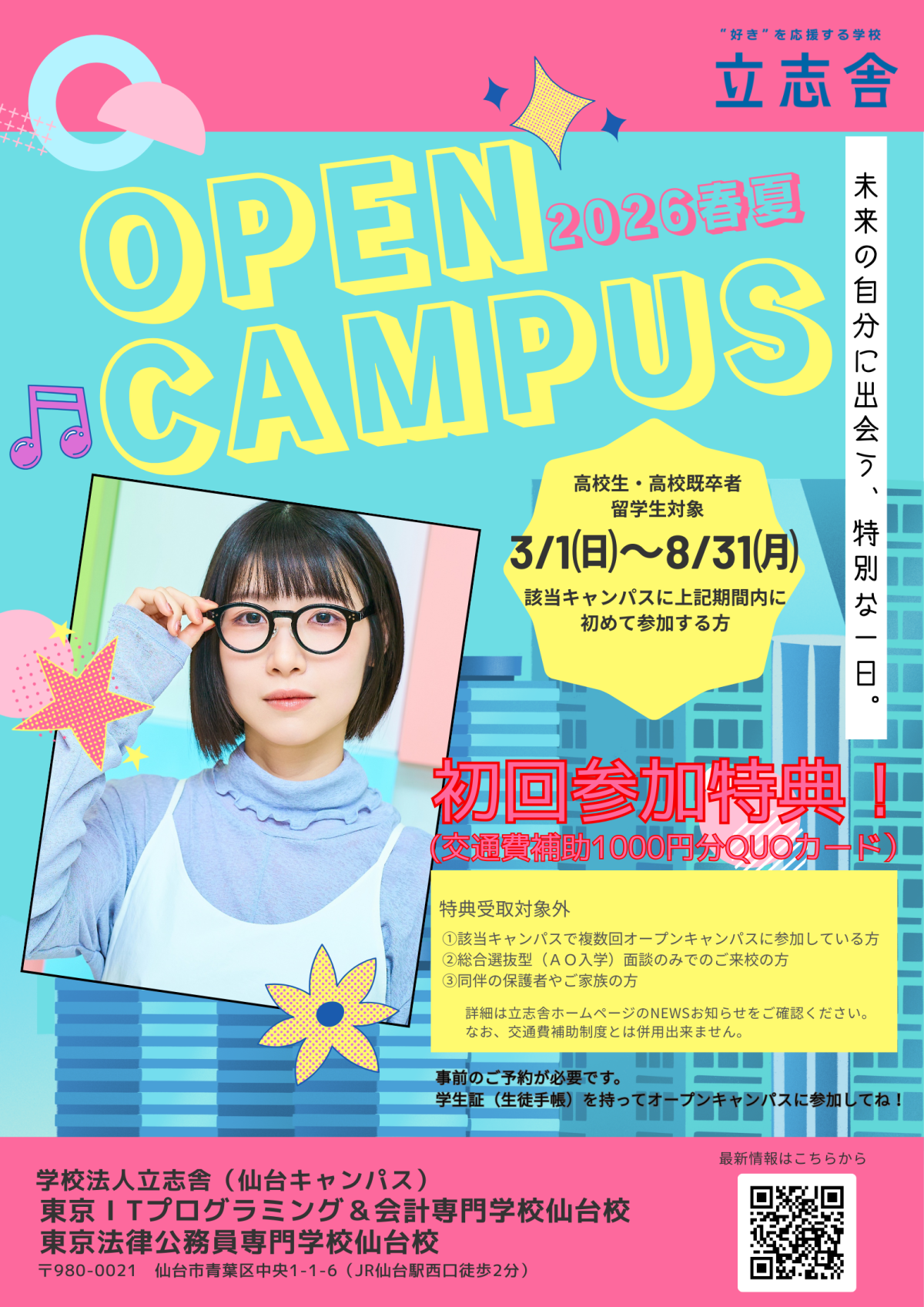 ★交通費サポート制度★オープンキャンパス初回参加特典!