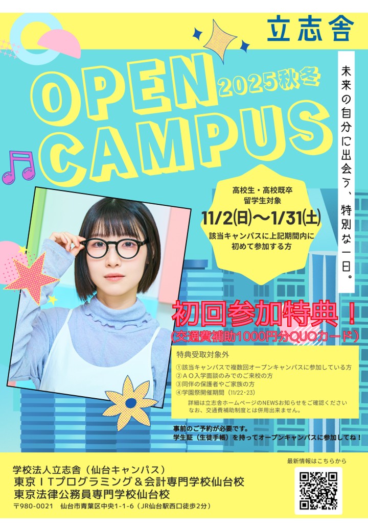 ★交通費サポート制度★オープンキャンパス初回参加特典!